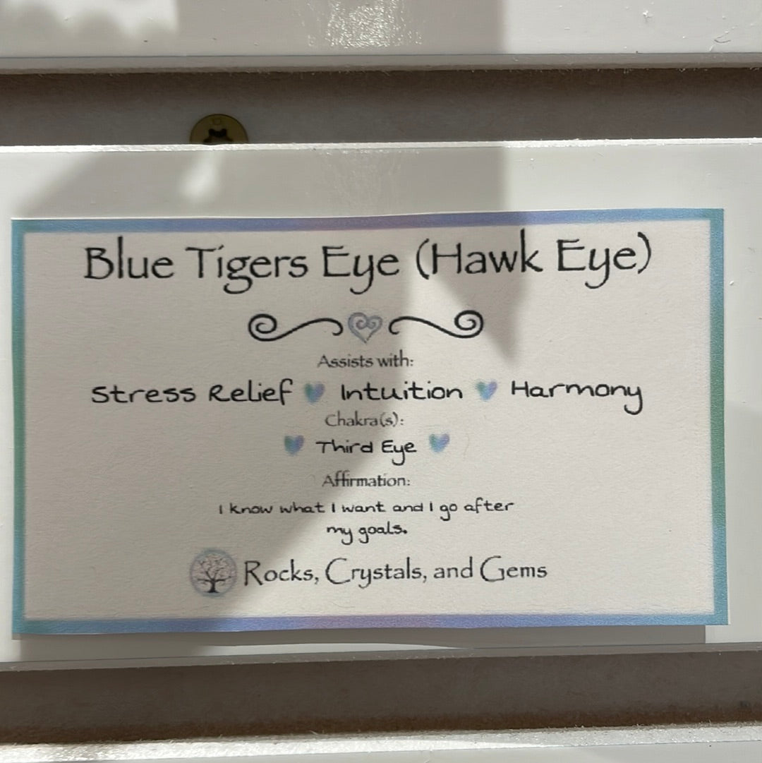 🔵 Blue Tiger's Eye: Dive into the serene energy of Blue Tiger's Eye, a stone of tranquility and insight. Its deep blue hues echo the soothing flow of water, enhancing your intuition and inner calm.